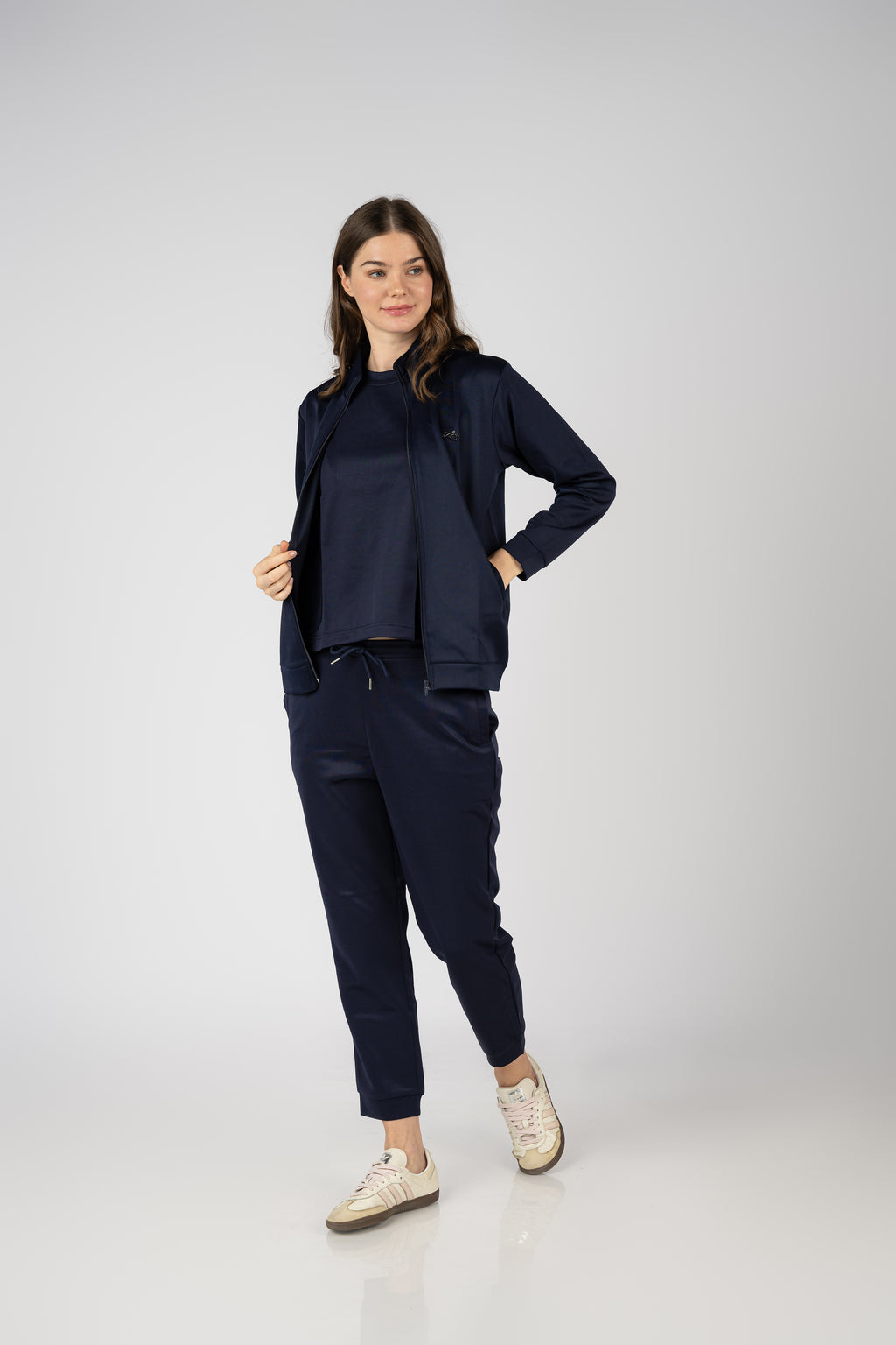 Ocean Pearl has a zipper as well as pearls around collar, pockets, and the cap.