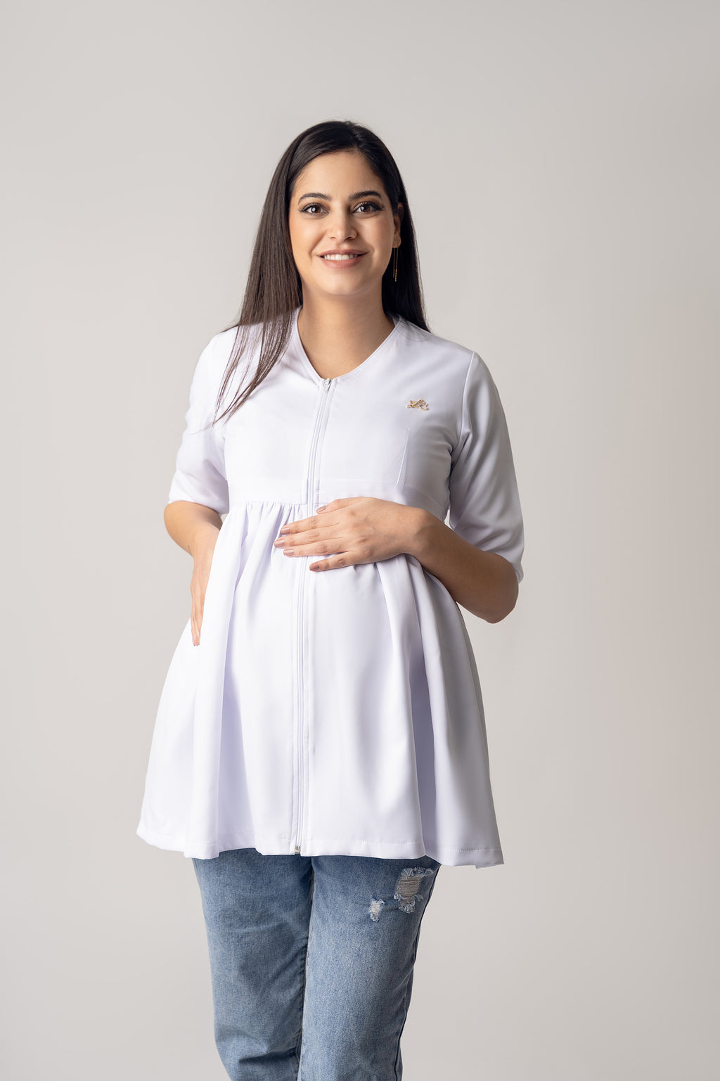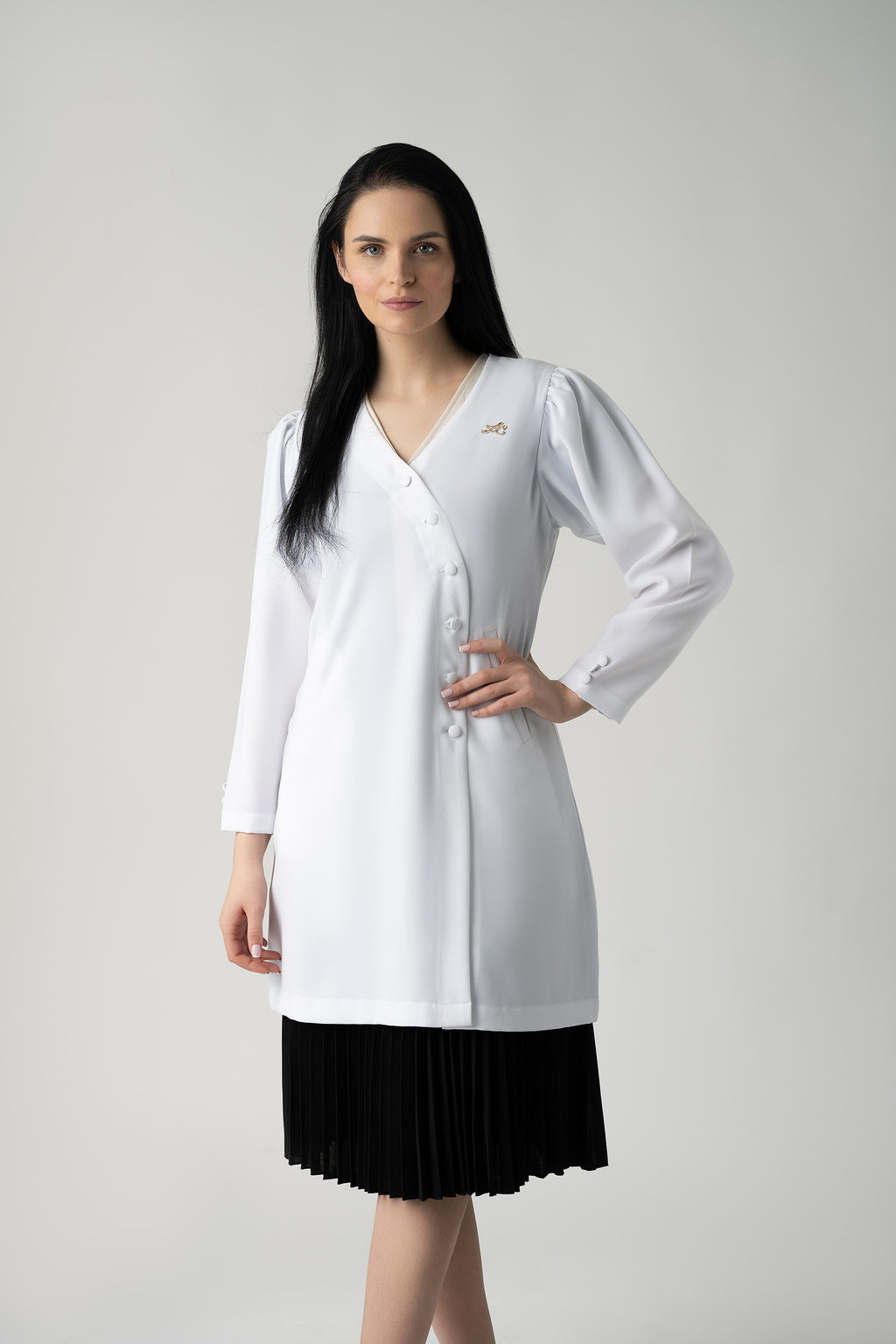 Lady in White has a lovely feminine design, buttons, and small pockets on the side.